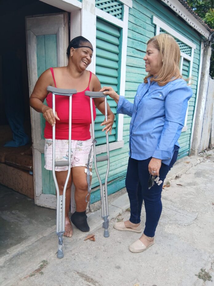 LOS RIOS, Bahoruco. – La alcaldesa del municipio de los Ríos, Martha Cuevas, entregó muletas a personas que padecen de algún tipo de problemas de movilidad, con los cuales, dijo, aporta a la mejora en la calidad de vida de los beneficiarios.
