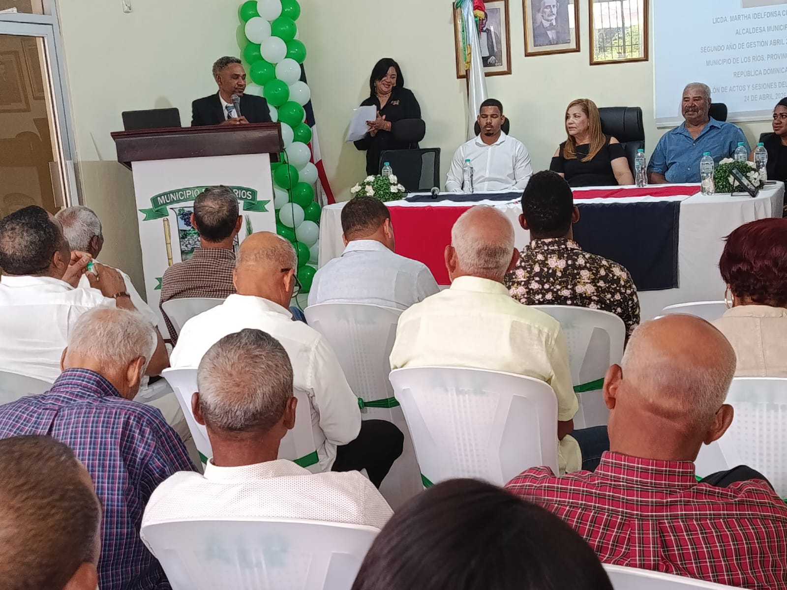 El acto protocolar inicio con la presentación de la mesa principal conformada por los concejales Jarlin Díaz, quien tuvo a su cargo la apertura del acto en su condición de presidente de la Sala Capitular, Mártires Sena, Susy Sena Vicepresidente a alcaldesa y Bolívar Batista, encargado local de planificación para continuar con la bendición del mismo a cargo del Pastor Nidio Méndez, entre otros.