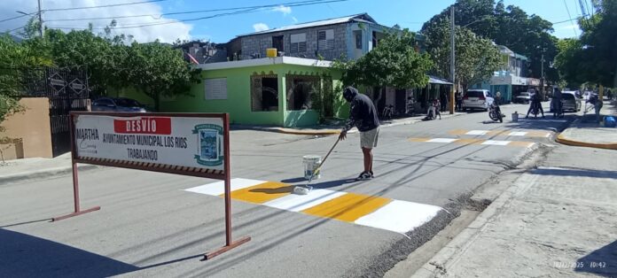 Los Ríos, Bahoruco. – La Alcaldía del Municipio de Los Ríos puso en marcha una jornada de pintura de las señales e infraestructuras de trafico de las principales calles del municipio.