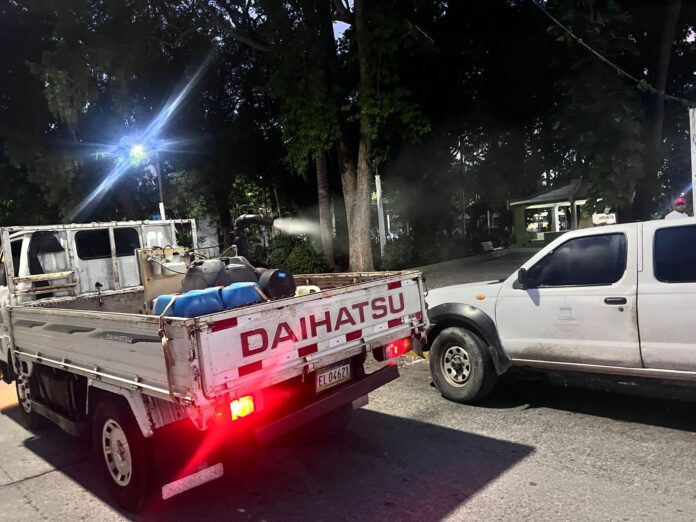 “La noche de ayer ejecutamos un plan de fumigación por todo el municipio, incluyendo la zona céntrica, operativo de fumigación ejecutado pensando en el bienestar de la población, ya que impactara a todos los sectores” dijo Mateo, a la vez que exhortó a los ciudadanos a mantener sus entornos limpios para prevenir propagación el mosquito y con ello de enfermedades.