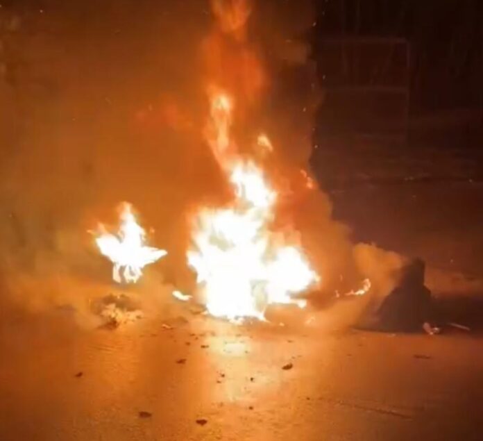 En la calle 10 de marzo, justo frente al cementerio, desconocidos, incendiaron neumáticos y lanzaron escombros, impidiendo el tránsito de vehículos que se dirigían hacia el distrito municipal de Monserrate, Neiba y la zona cañera.