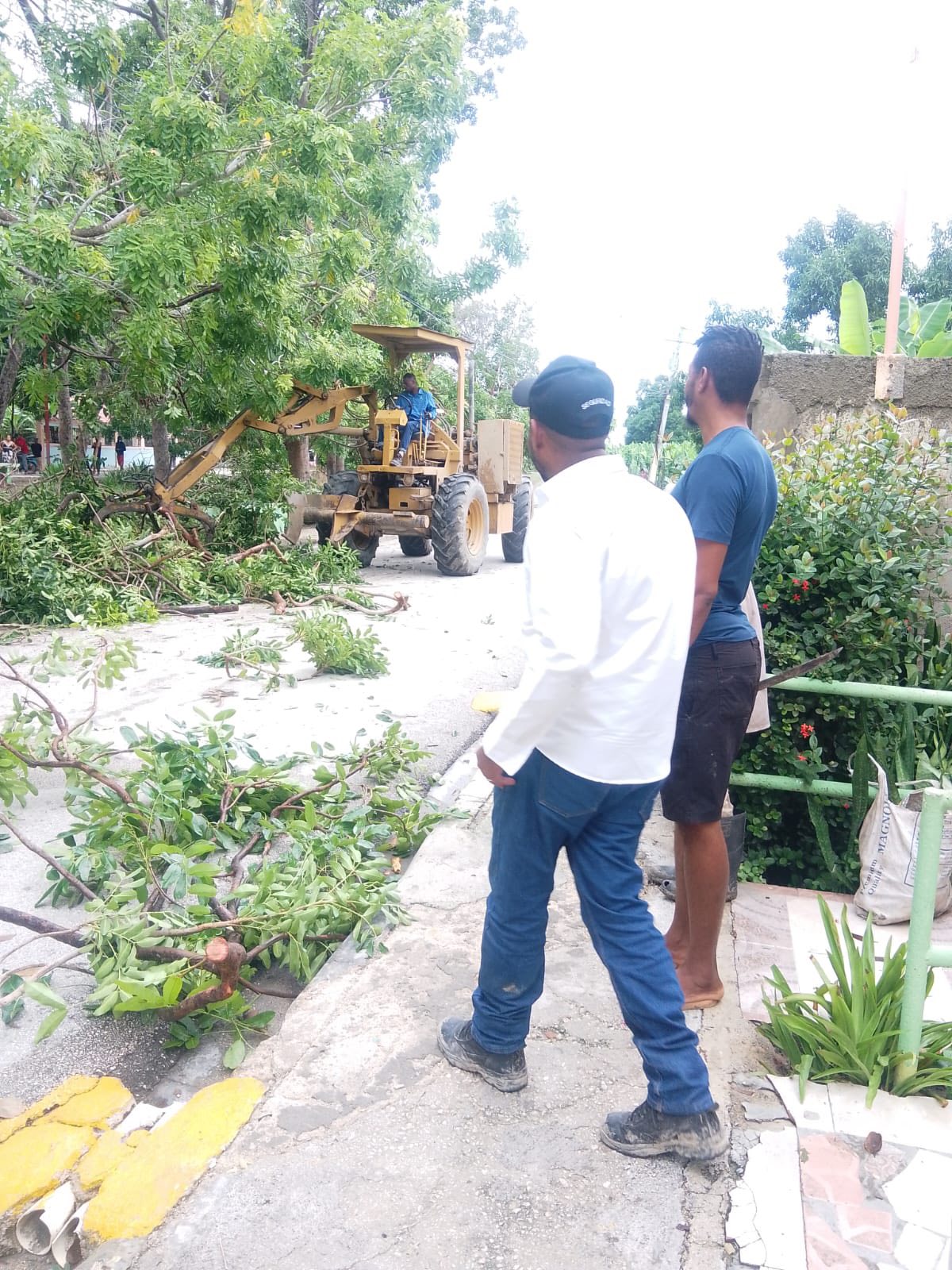 Uvilla, Tamayo. – En el marco de las acciones que ejecuta la Junta Distrital de Uvilla para limpiar la comunidad, tras el paso de la tormenta y luego Huracán Melisa, el director de la Junta Distrital, Samuel Ramírez y el Consorcio Azucarero Central, CAC, iniciaron una jornada de limpieza de árboles caídos y escombros que fueron arrastrados por el fenómeno atmosférico.