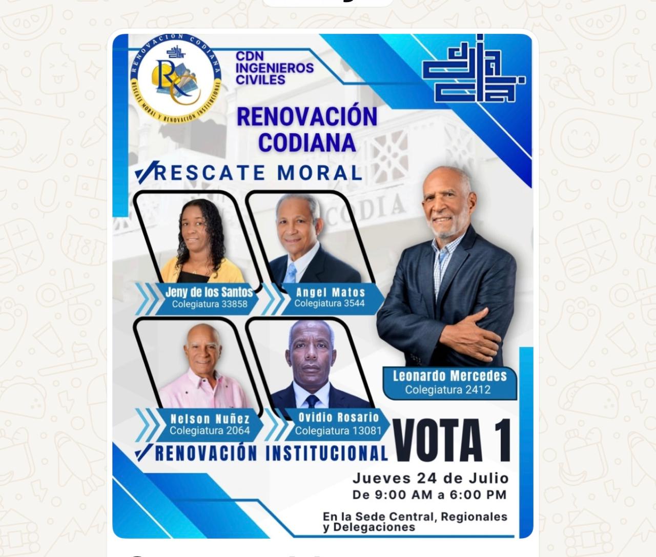 En tal sentido la plancha número 1 que encabeza el ingeniero Leonardo Mercedes, llamó a votar en la plancha que encabeza junto a Jenny de los Santos, Ángel Matos, Nelson Núñez y David Rosario.