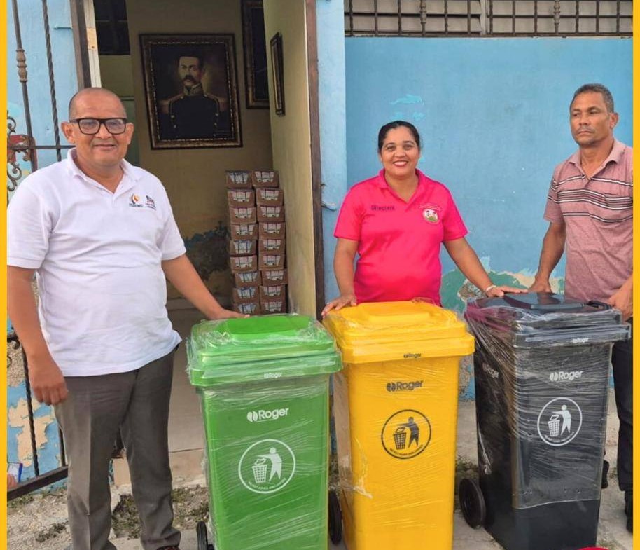 Alcaldía entrega de zafacones para reclasificación correcta de los residuos en centros educativos