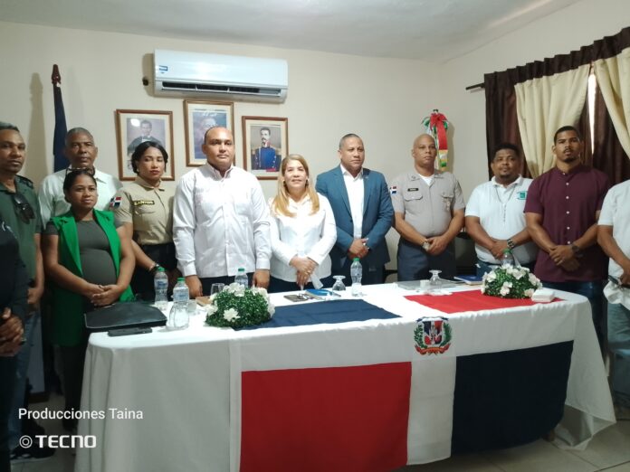 Los Ríos, Provincia Bahoruco. Representantes del Ministerio de Interior y Policía (MIP), la Policía Nacional (PN) y la Dirección Nacional de Control de Drogas (DNCD), en coordinación con la Alcaldía del Municipio de Los Ríos, en la persona de la Señora Martha Cuevas, encabezaron, en la mañana de este viernes, una mesa de trabajo para coordinar acciones y mejoras en procura de garantízarle a la ciudadanía
