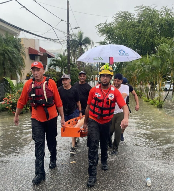 La Defensa Civil informó que rescatistas de esa entidad y miembros del Cuerpo de Bomberos del Distrito Nacional rescataron a un hombre que quedó atrapado en una alcantarilla.